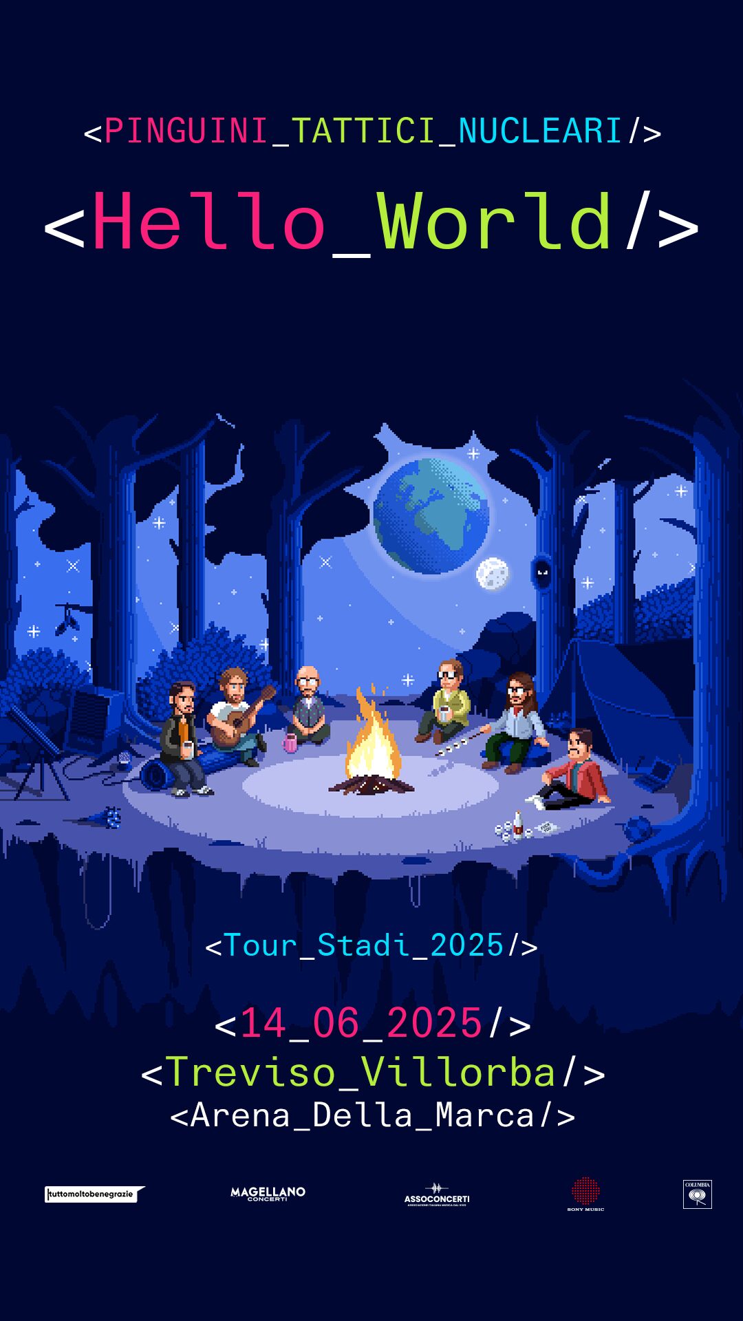 Dopo un en plein di sold out per il tour indoor nei palazzetti, che partirà il 3 e 4 aprile con due date al Palazzo del Turismo di Jesolo (VE), i Pinguini Tattici Nucleari, la band dei record, si preparano a cavalcare il 2025 con un nuovo tour negli stadi e nelle più grandi arene della penisola. Nove le prime date annunciate per il tour del 2025, dopo l’incredibile debutto negli stadi che ha segnato il 2023 come l’anno d’oro della band, sempre al vertice di tutte le classifiche e con oltre un milione di biglietti venduti in un solo anno. In tutto il Nordest l’unica imperdibile data a calendario del nuovo progetto live dei Pinguini Tattici Nucleari è fissata per sabato 14 giugno 2025, all’Arena della Marca, venue per concerti e spettacoli live allestita negli spazi dell’Ippodromo Sant’Artemio di Treviso-Villorba, che torna così ad ospitare eventi musicali di primissimo livello.