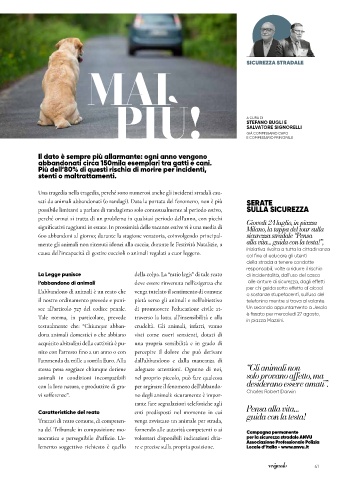 600 abbandoni al giorno; durante la stagione venatoria, coinvolgendo principal- sicurezza stradale “Pensa